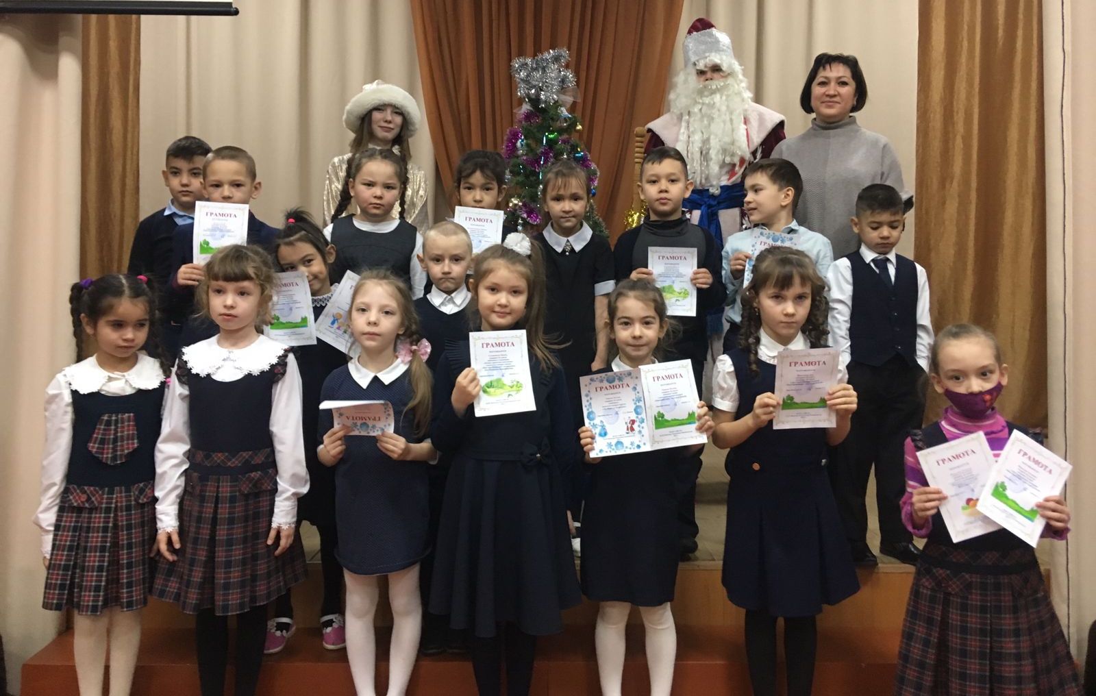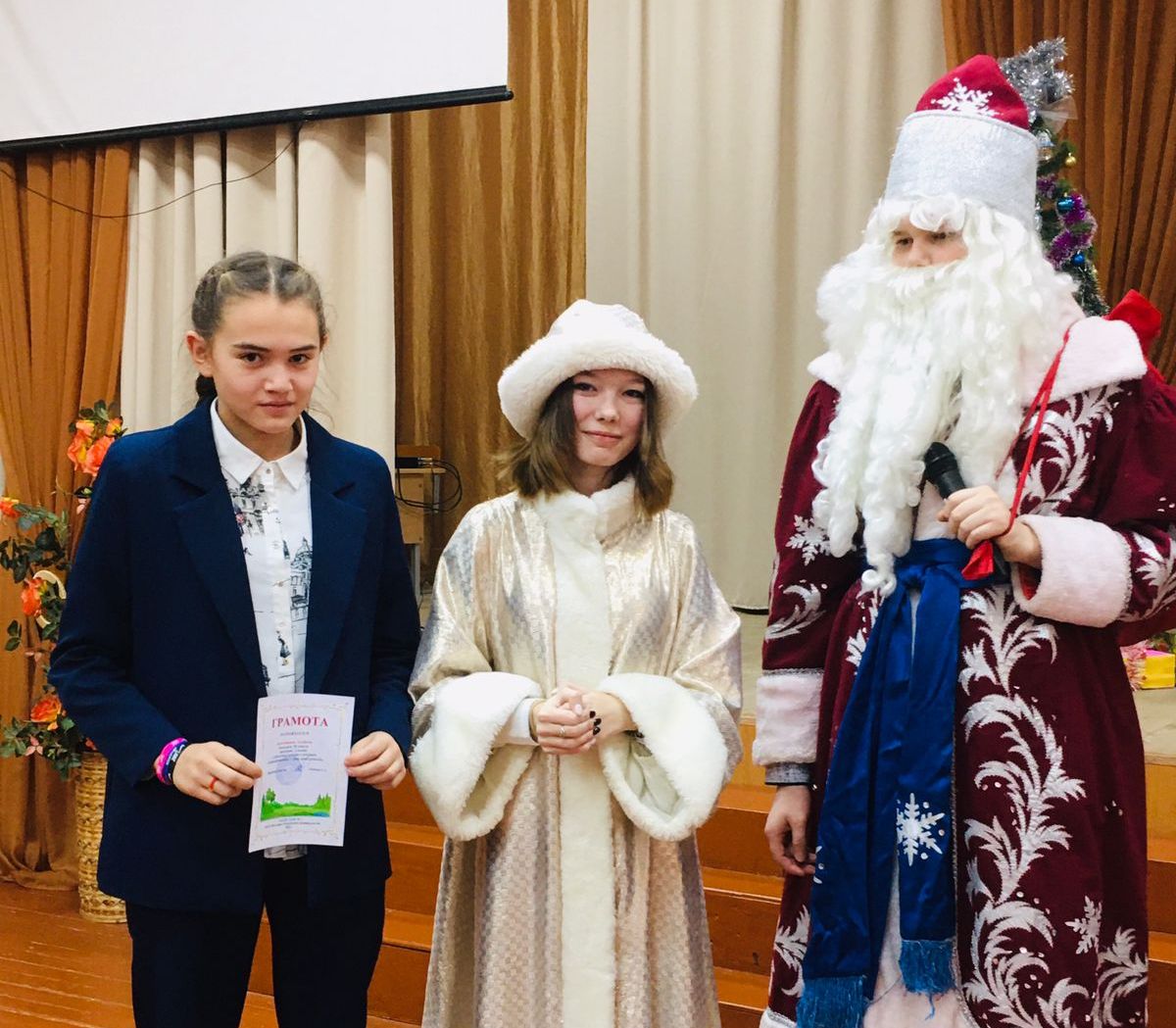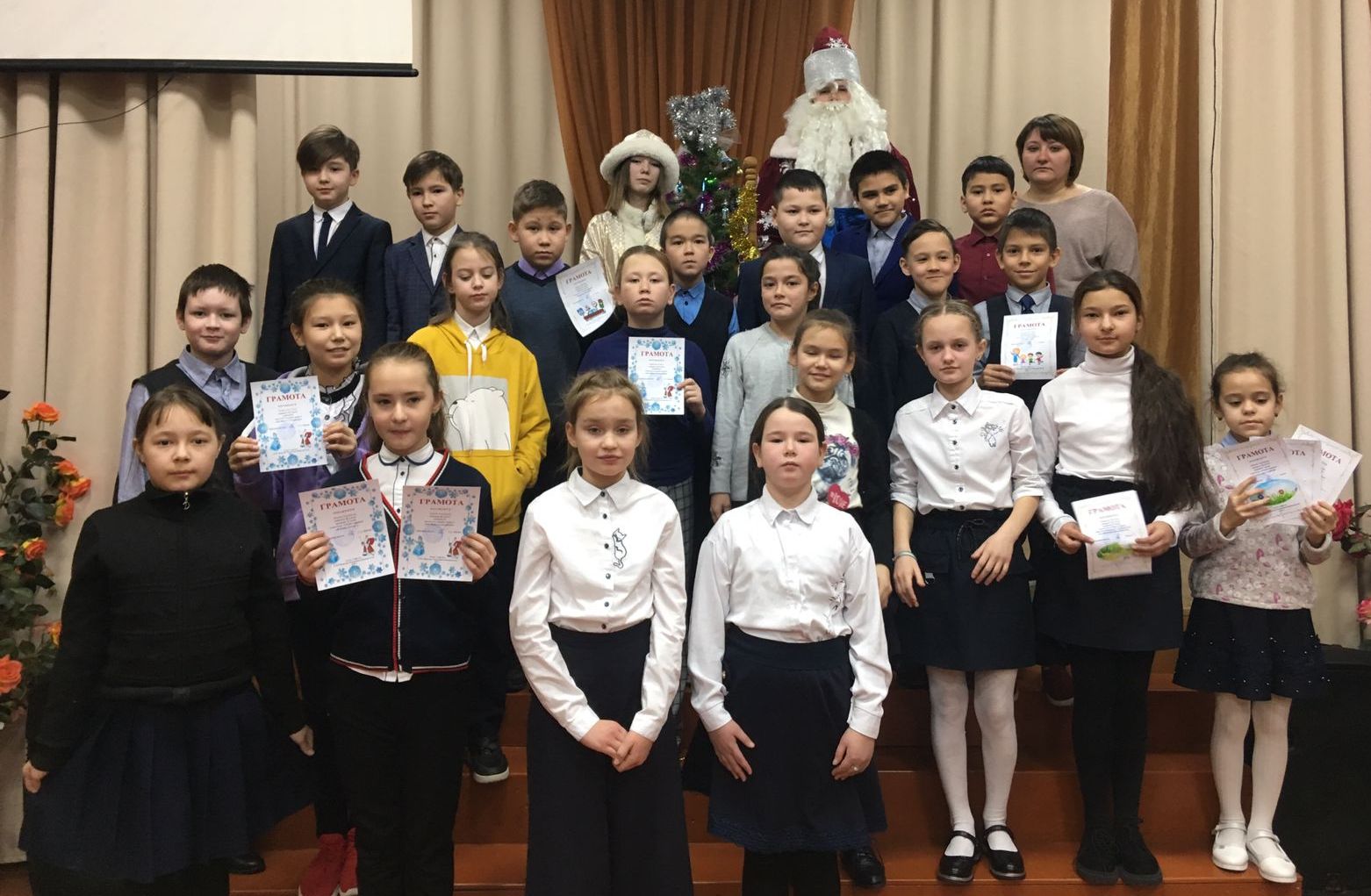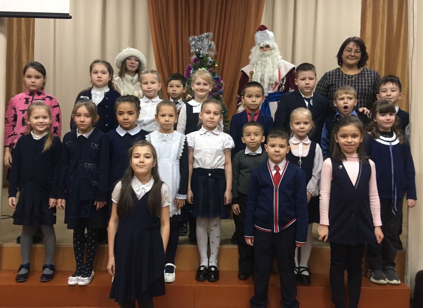 В преддверии Нового года в нашей школе прошли праздничные линейки с участие Деда Мороза и Снегурочки.