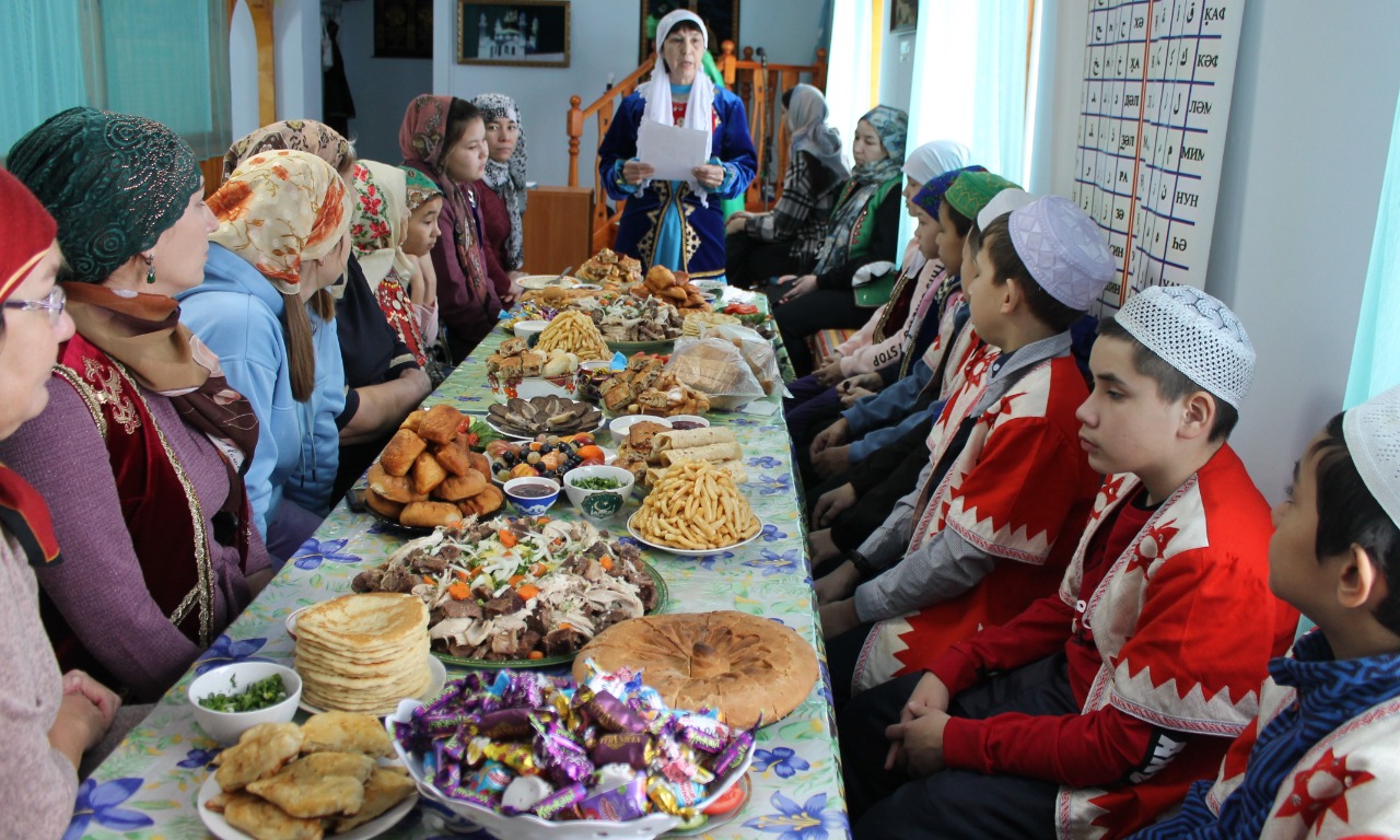 В каникулы родители подготовили и представили ребятам старинный башкирский обряд "Һуғым ашы". Они познакомили детей с обычаем трудовой взаимопомощи (омэ). Взрослые угостили детей бишбармаком (ҡуллама), йыуаса (баурсак), чак-чак, бульоном с курутом, блинами, пирогами и различными угощениями. Перед пиршеством гости произнесли такое благопожелание: пусть у вас будет много скота, пусть ваш скот будет крепким...