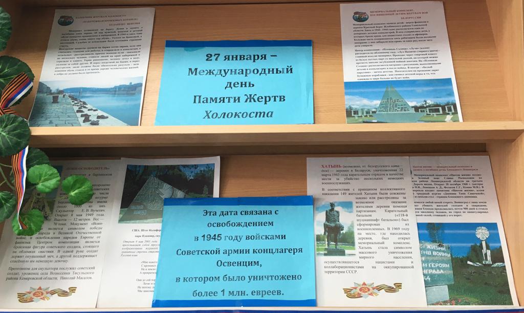 В рамках реализации плана мероприятий, посвящённых Международному дню памяти жертв Холокоста, школьной библиотеке организована выставка и обзор «27 января-Международный День памяти жертв Холокоста».