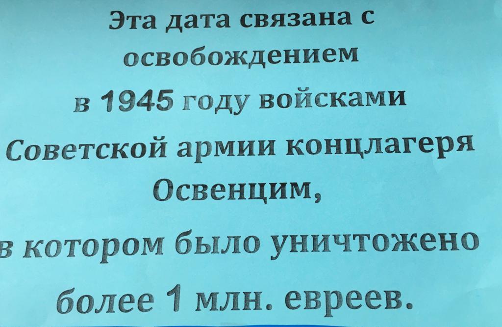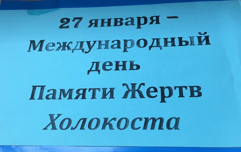 В рамках реализации плана мероприятий, посвящённых Международному дню памяти жертв Холокоста, школьной библиотеке организована выставка и обзор «27 января-Международный День памяти жертв Холокоста». В этот день в 1945 году подразделения Красной Армии освободили самый ужасный из нацистских концлагерей-Освенцим и Аушвиц. Об этом страшном периоде преследования и массового уничтожения людей, о Холокосте, рассказала библиотекарь школы Мухаметова Г.М. О страшной участии миллионов евреев, для которых так и не закончились ужасы войны, ведь они так и не дожили до радостного часа освобождения и Победы.
