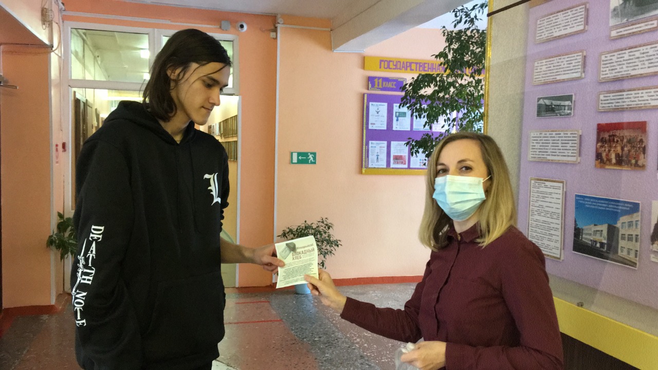 В рамках данной акции активисты нашей школы раздавали ленинградскую «норму» – 125 граммов хлеба на человека. Участниками мероприятия стали школьники, педагоги.