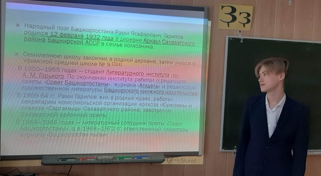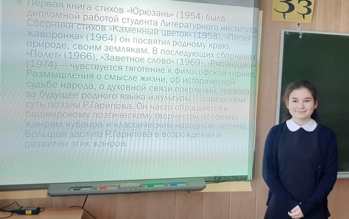 Урок посвященный жизни творчеству народного поэта Республики Башкортостан Рами Гарипова. В нынешнем году Республика Башкортостан отмечает 90-летие со дня рождения Рами Гарипова.