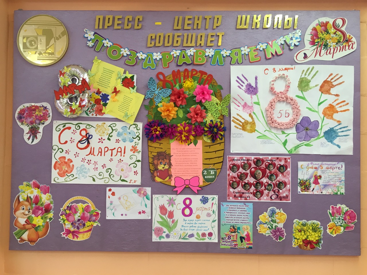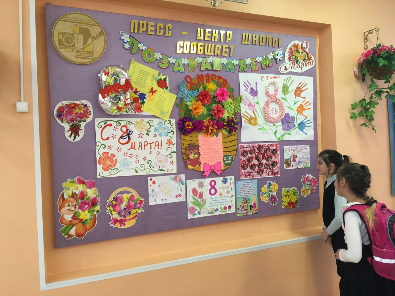 К Международному женскому дню мальчишки школы сделали праздничные открытки для своих одноклассниц и учителей. Снова наш информационный стенд засиял красочными рисунками, яркими аппликациями, тёплыми поздравлениями, знакомыми фотографиями. Весь предпраздничный день женская половина школы любовалась этими замечательными открытками. С 8 марта!!!