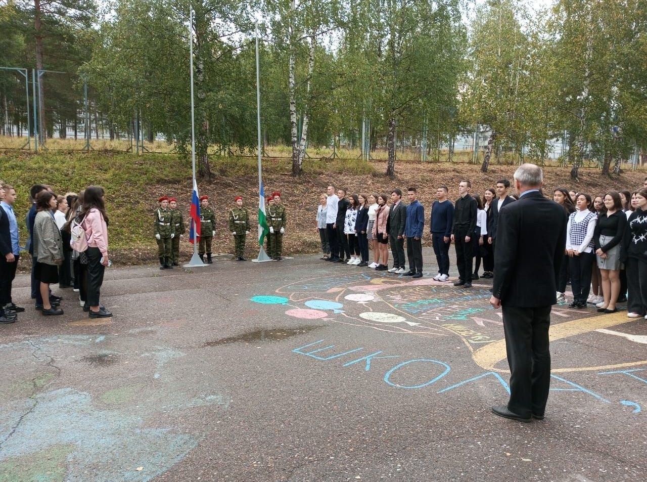 Во всех школах России с 1 сентября проходит еженедельное поднятие Государственного флага России. В нашей школе сегодня, 5 сентября 2022г, состоялось торжественное поднятие Государственного флага Российской Федерации и Государственного флага республики Башкортостан.