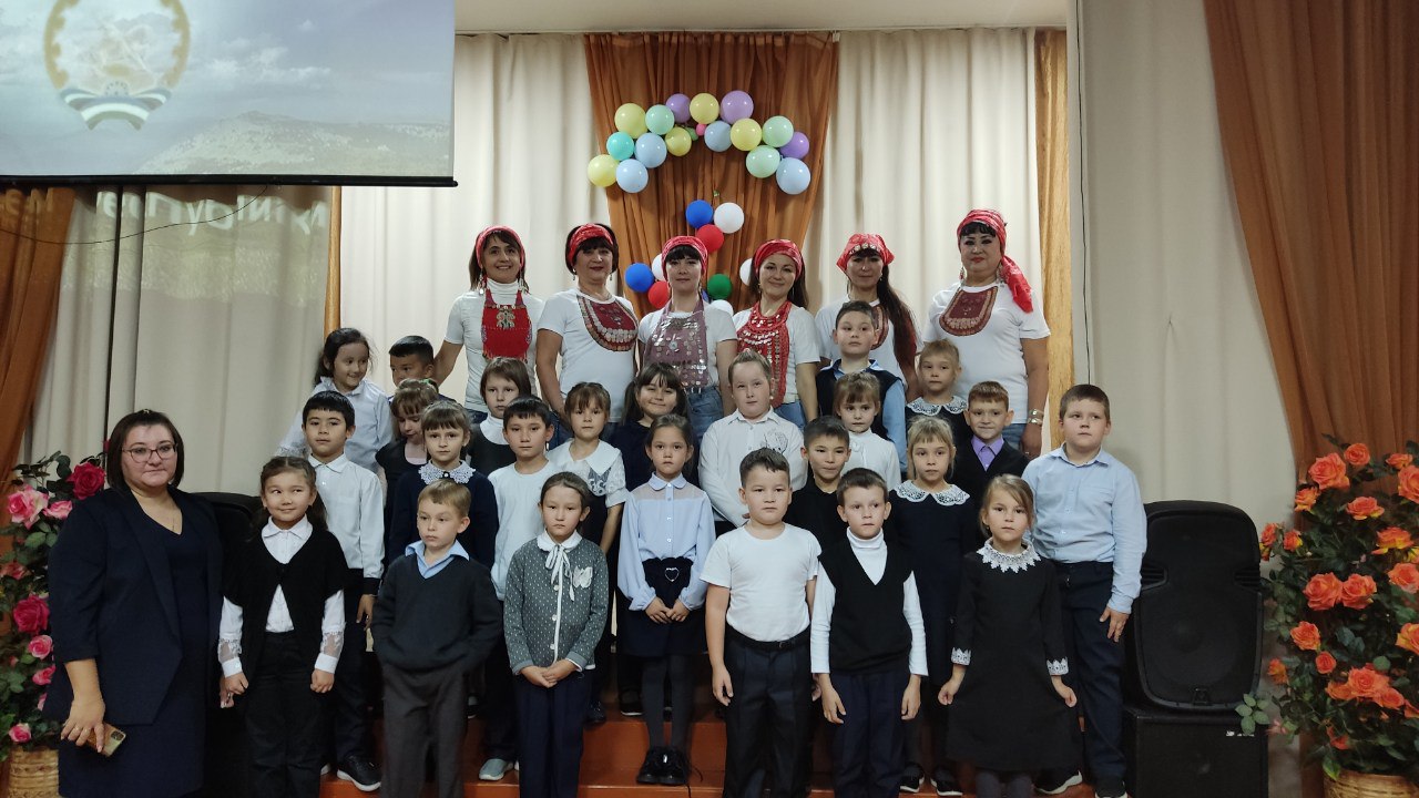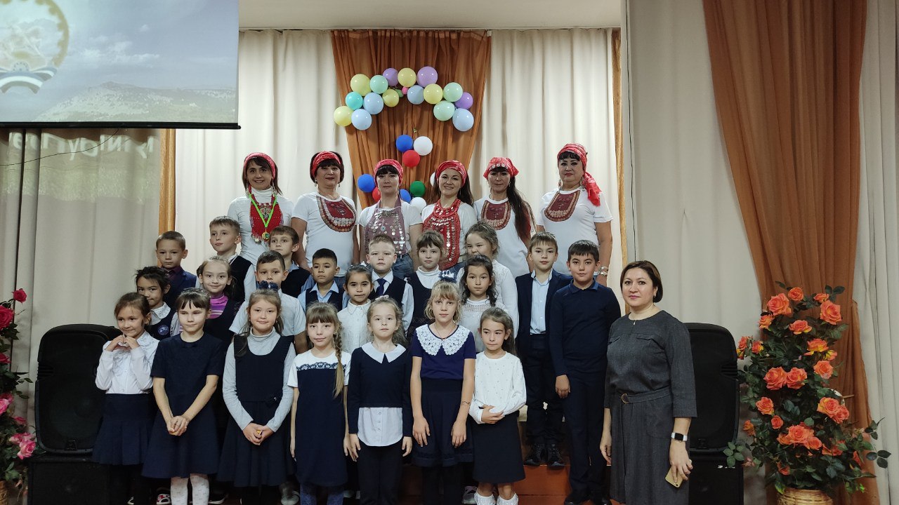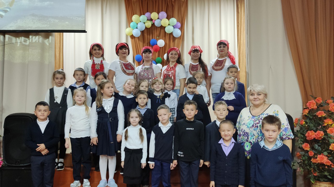 Для учащихся 1-2 классов выступила этногруппа «Хомай» с показом национального украшения – нагрудника. Руководитель – Янбаева Зарифа Киньебаевна. Также во время мероприятия для учащихся была подготовлена викторина о Башкирии.
