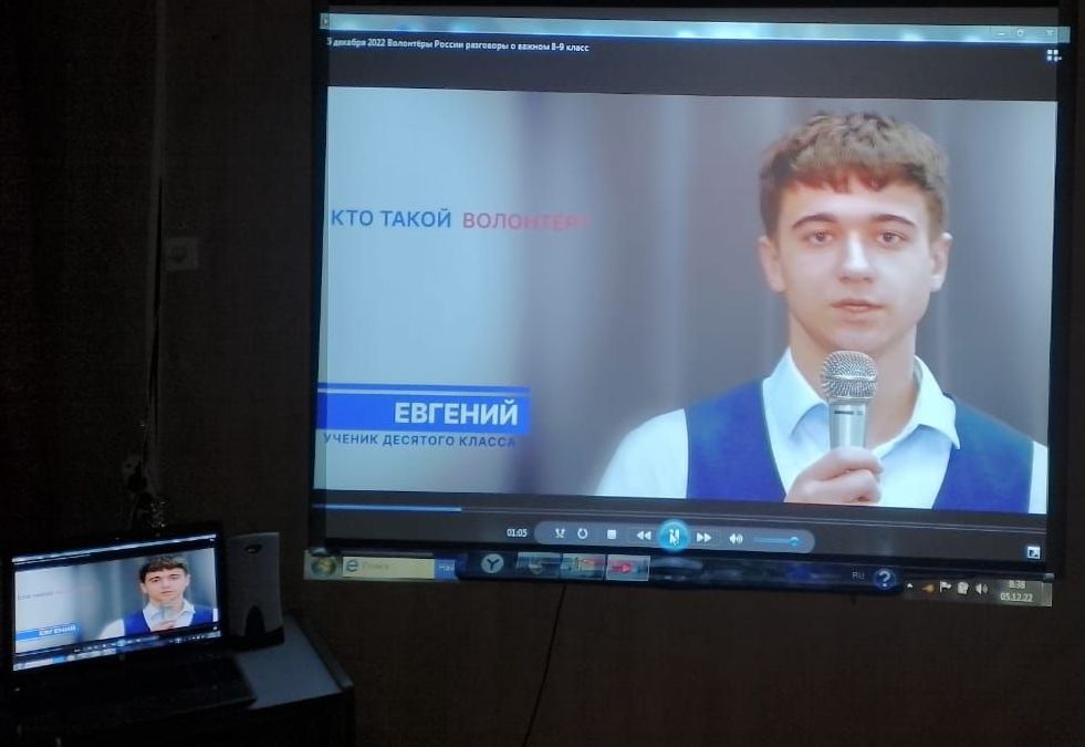 Учащиеся смогли познакомиться с одним из знаменитых волонтеров России Константином Юрьевичем Хабенским. После просмотра интервью поднимались вопросы, связанные с волонтерством, как образом жизни. Школьники смогли описать облик волонтёра, и что его побуждает к добровольческой деятельности. В культуре многих народов заложен постулат о помощи нуждающимся. И поддерживая традиции своих народов, волонтёрское движение приобретает свою миссию.