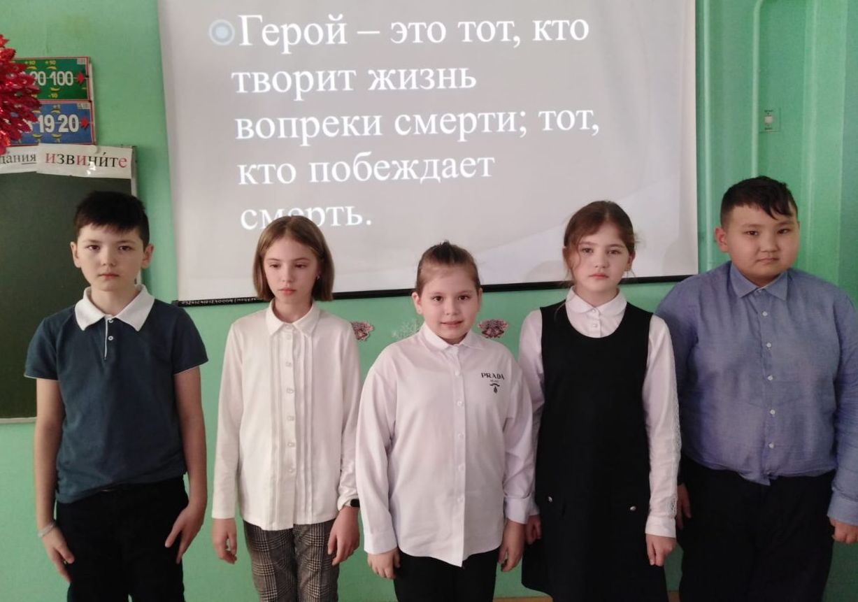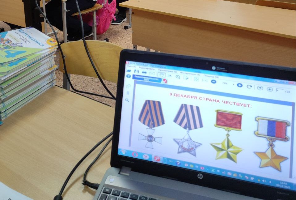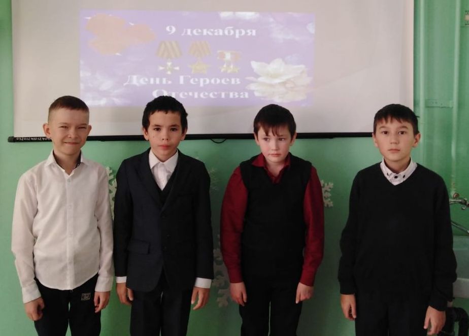 9 декабря в нашей школе оформлен школьный стенд «Сыны Отечества на страже», проведены тематические классные часы «Героями не рождаются...», радиолинейка «Героям Отечества посвящается...», выставка «Во имя Родины и долга», библиотечный урок «День Героев Отечества», урок Памяти «Дети - герои». Все мероприятия прошли с целью знакомства с историей возникновения праздника «День Героев Отечества», его героями и их подвигами.