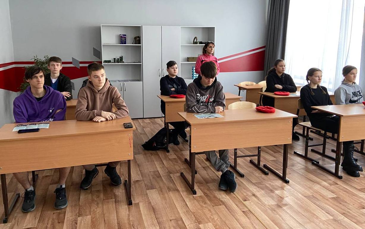 12 января 2023 в рамках реализации федерального проекта «Патриотическое воспитание граждан Российской Федерации» национального проекта «Образование» состоялась встреча юнармейцев, учащихся 10А класса с выпускником школы 2019 г., курсантом Михайловской военной артиллерийской академии г.Санкт-Петербург Шилиным Валерой. Встреча прошла под девизом «Есть такая профессия – Родину защищать!» и была направлена на гражданско-патриотическое воспитание молодежи. Ребята с большим интересом посмотрели презентацию военного вуза. Курсант Шилин В. рассказал о том, как проходит обучение, кого готовят в данном вузе. Встреча прошла оживленно и полезно. Особый интерес к мероприятию проявили юноши, которые собираются поступать в военные вузы. Они задавали вопросы о порядке прохождения профессионального отбора в военное училище, об организации в нем учебного процесса. В конце данного мероприятия сделали общую фотографию.