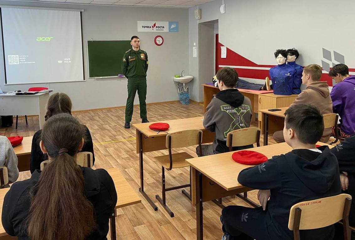 12 января 2023 в рамках реализации федерального проекта «Патриотическое воспитание граждан Российской Федерации» национального проекта «Образование» состоялась встреча юнармейцев, учащихся 10А класса с курсантом Михайловской военной артиллерийской академи