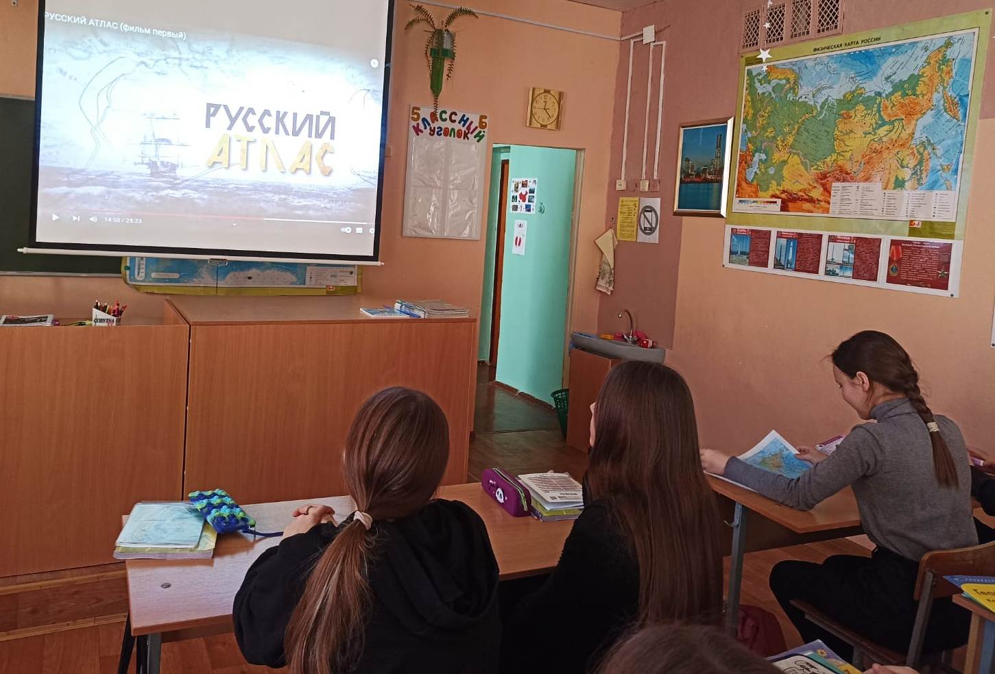 На уроках географии в 5-9 классах был проведен просмотр трех научно-популярных фильмов "Русский Атлас"