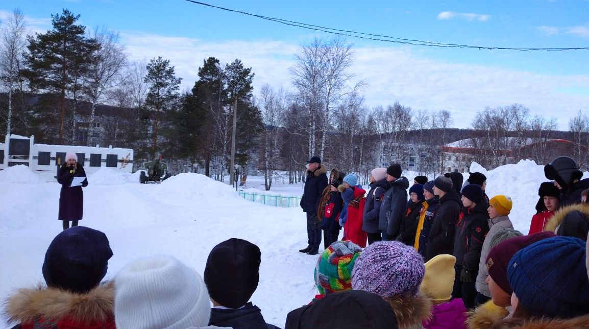 Перед первым уроком юнармейцы провели радиолинейку и минуту молчания в память жертв блокады Ленинграда.