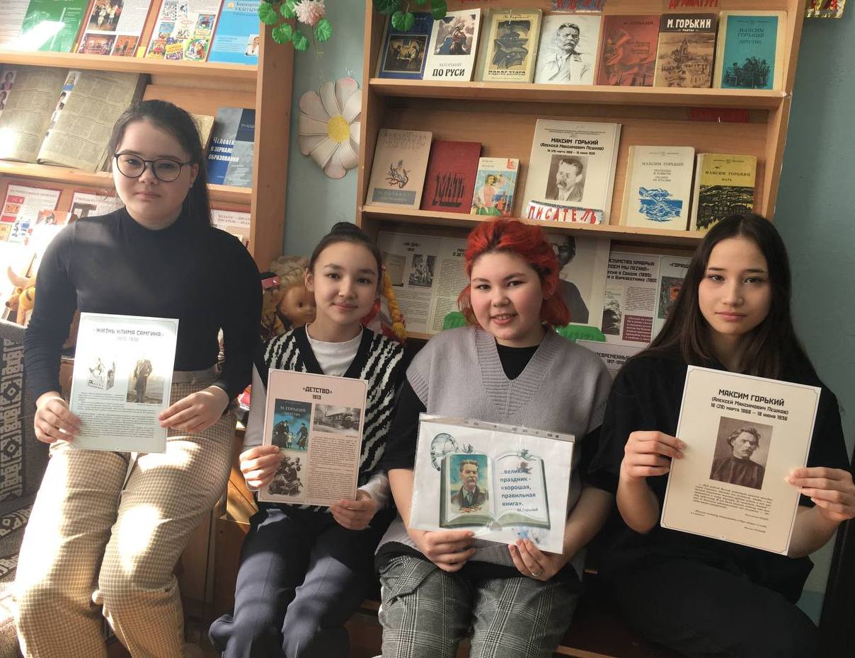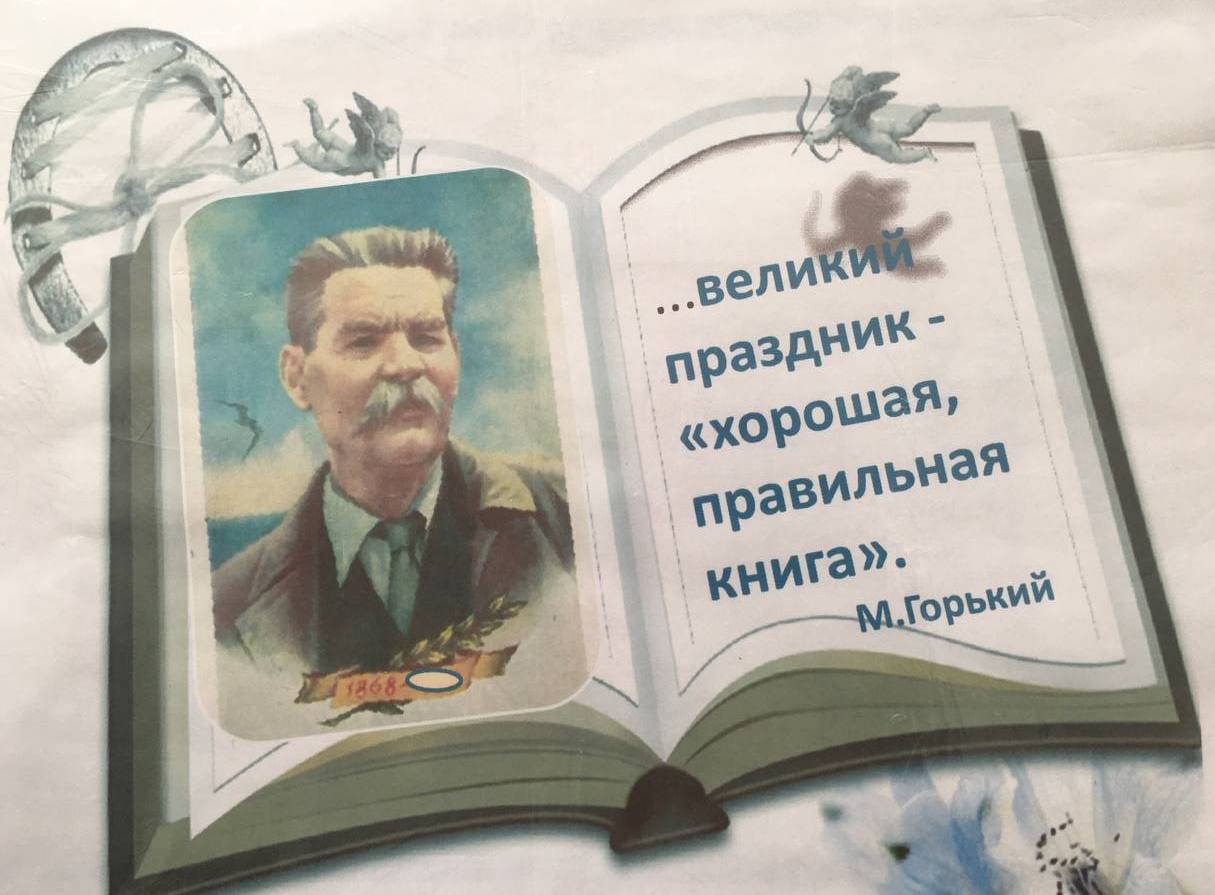 «Нельзя человеку отказывать в двух вещах:в хлебе и в книге». М.Горький В библиотеке школы 1 имени Б . Абдрахманова организована выставка книг 155 летию со дня рождения Максима Горького под названием « Главные герои Горького- удивительные люди». Горький очень любил детей. Эта любовь была прочной и давней. В юные годы по праздникам собрав ребят со всей улицы, он уходил с ними на целый день в лес, а возвращаясь, нередко тащил самых усталых на плечах. До революции он много помогал обездоленным детишкам. Библиотекарь школы Мухаметова Г.М. рассказала детям о жизни и творчестве писателя. Много сил отдаёт писатель организации и созданию литературы для детей, определяет ее принципы, заботится о том, что, чтобы книги для ребят писали люди, которые любят детей, понимают их внутренний мир, их запросы, желания, интересы.