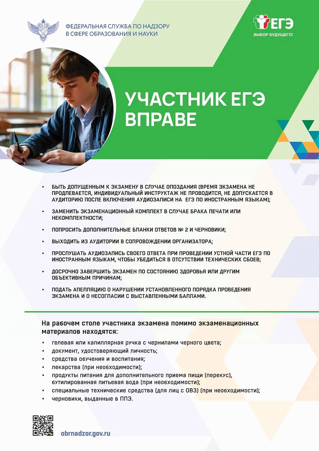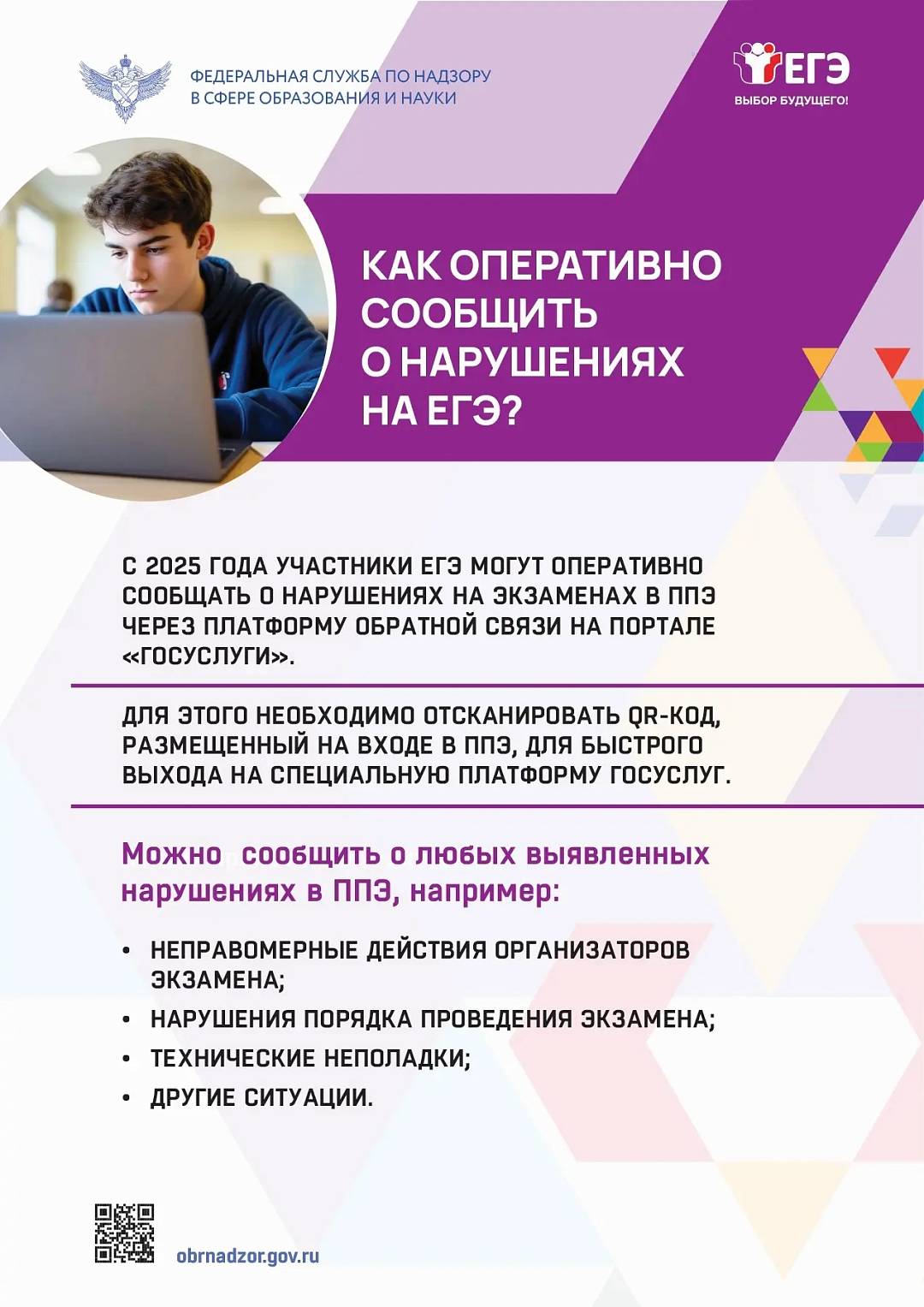 Как быстро сообщить о нарушениях на ЕГЭ, как обеспечивается безопасность на экзамене, когда пройдут дополнительные дни сдачи – ответы на эти и другие вопросы о ЕГЭ можно найти в новых информационных плакатах, подготовленных Рособрнадзором.
