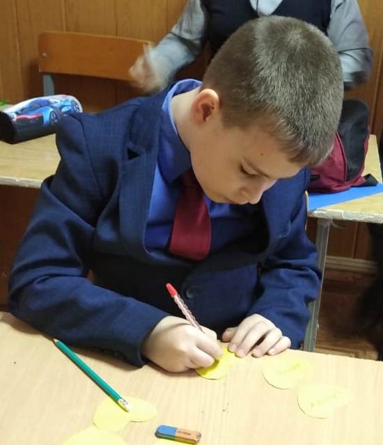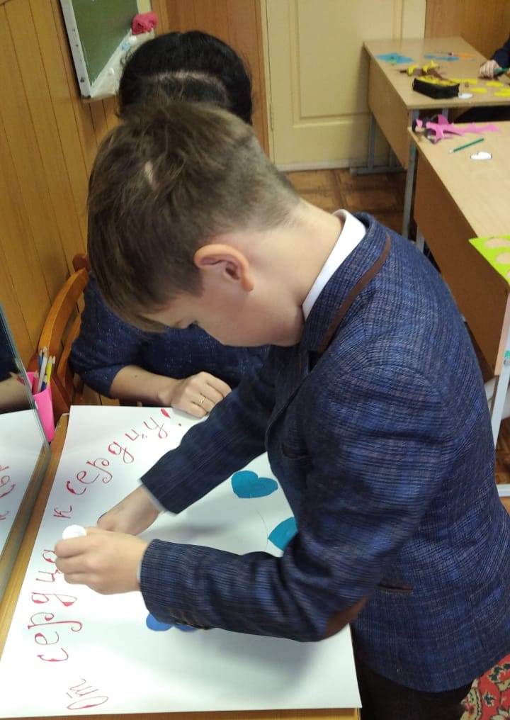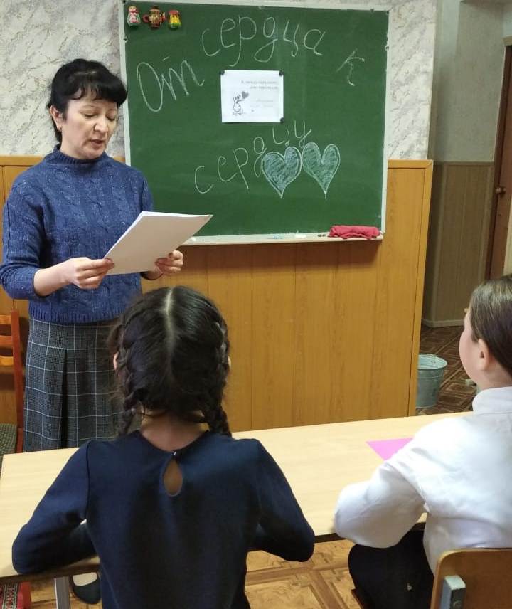 2 декабря, педагог-психолог школы Зайнуллина А.З. провела внеклассное мероприятие «От сердца к сердцу» для детей, находящихся в трудной жизненной ситуации. Мероприятие проведено с целью привития у детей правильного и разумного отношения к людям с ограниченными возможностями; привлечения внимания школьников к проблемам детей-инвалидов; развития нравственных качеств у учащихся. Во время мероприятия педагог-психолог провела информационную беседу, задавала вопросы, а в завершении мероприятия дети выполнили коллективную поделку с искренними пожеланиями для инвалидов. Ребята сделали вывод, что в жизни нужно нести миру добро и красоту.