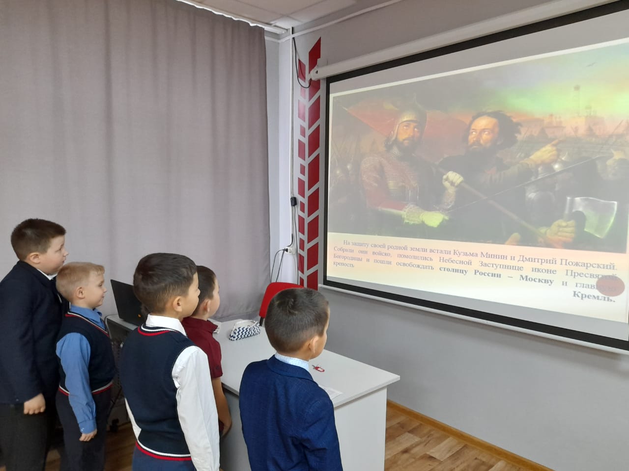Ко Дню народного единства в нашей школе были проведены тематические классные часы, на которых ребята смотрели познавательные видеоролики, презентации, отрывки из художественных фильмов, участвовали в викторинах, творческих конкурсах. Также этой дате была посвящена и школьная радиолинейка, в которой ведущие подробно рассказали об истории возникновения праздника, о роли сплоченности и единства российского народа.
