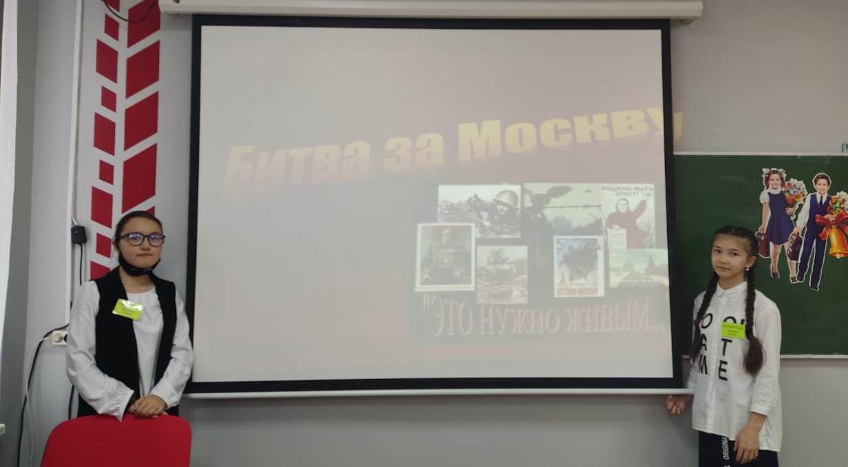 25 октября 2021 в 7-8 классах прошли уроки мужества. Столицу нашей Родины не раз пытались захватить враги: Тохтамыш, польский король Сигизмунд II, Наполеон, и, конечно, фашистская Германия. Но всегда наш народ самоотверженно защищал свою столицу! В 1812 году, когда французы стояли под стенами Москвы, Кутузов произнёс великую фразу: "Теперь ни шагу назад. Отступать некуда, за нами Москва". Именно так мы решили назвать свой урок мужества " Ни шагу назад. Битва за Москву ". Ученики узнали о фашистских планах захвата СССР и взятия Москвы, вспомнили подвиги русского народа во время битвы за Москву: героический поступок бойцов стрелковой дивизии Панфилова, героизм Зои Космодемьянской. В заключение урока был организован просмотр документального короткометражного фильма.