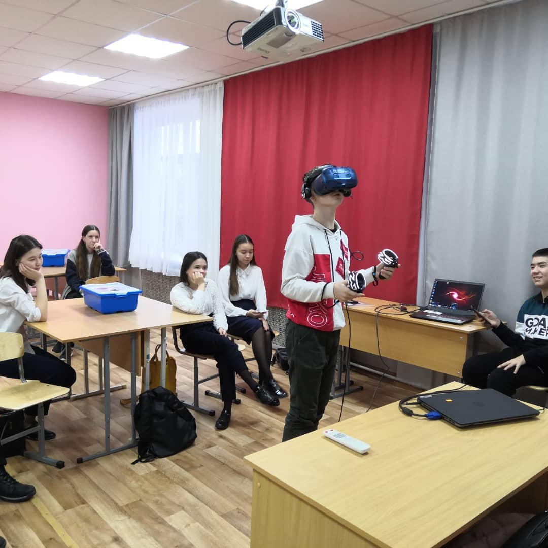 Также на занятии мы с помощью VR шлема погрузились в виртуальный мир игры The Lab.